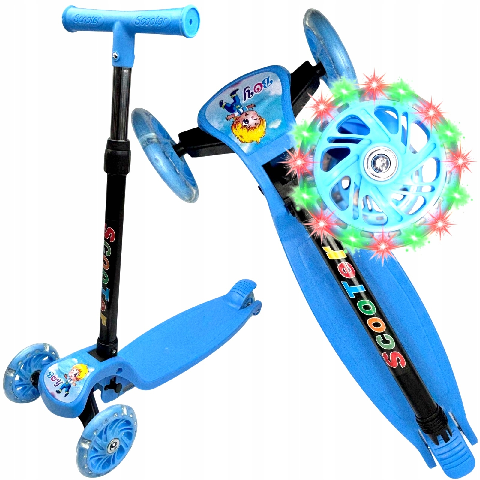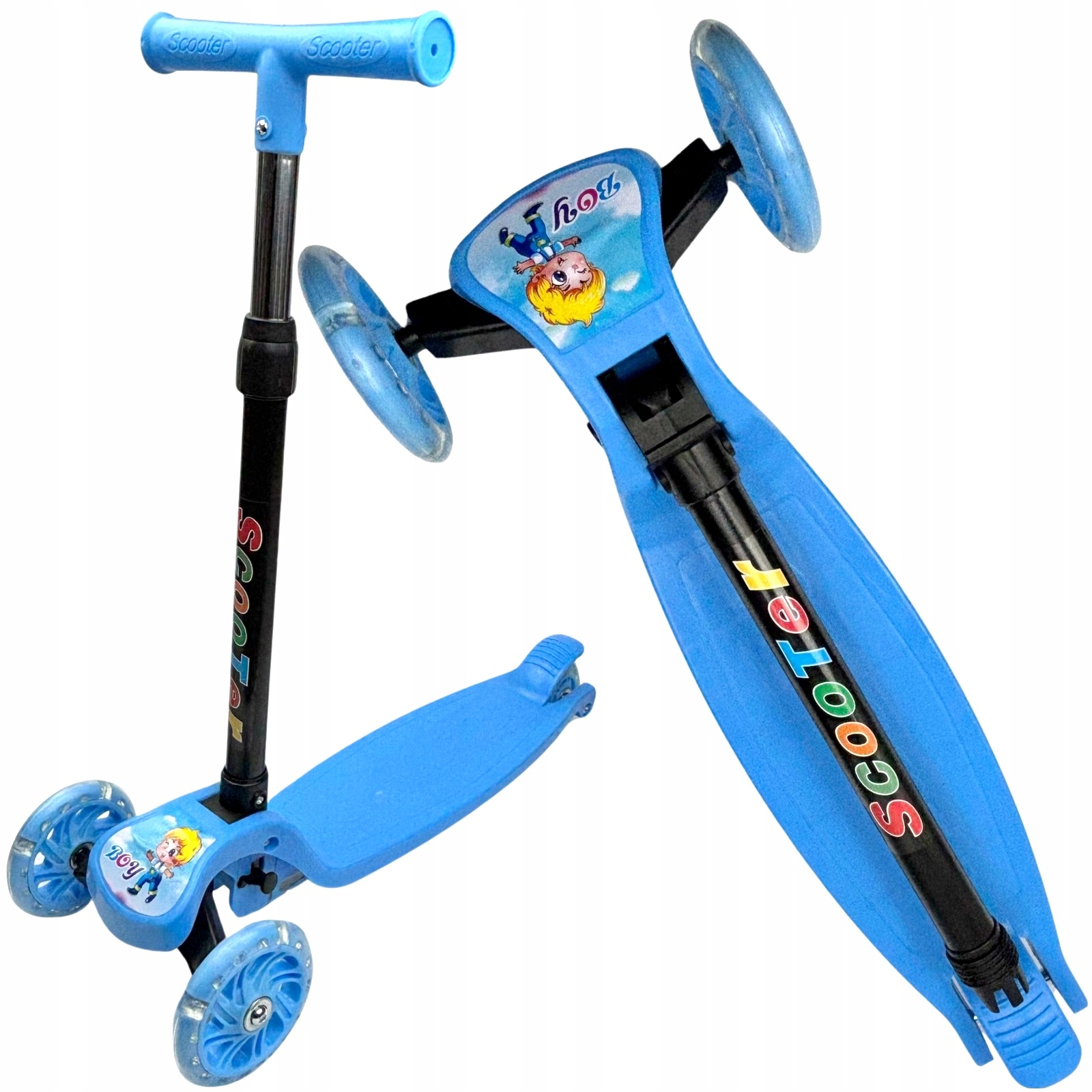 Hulajnoga Trójkołowa Balansowa Dla Dzieci świecące Koła LED Składana Niebie