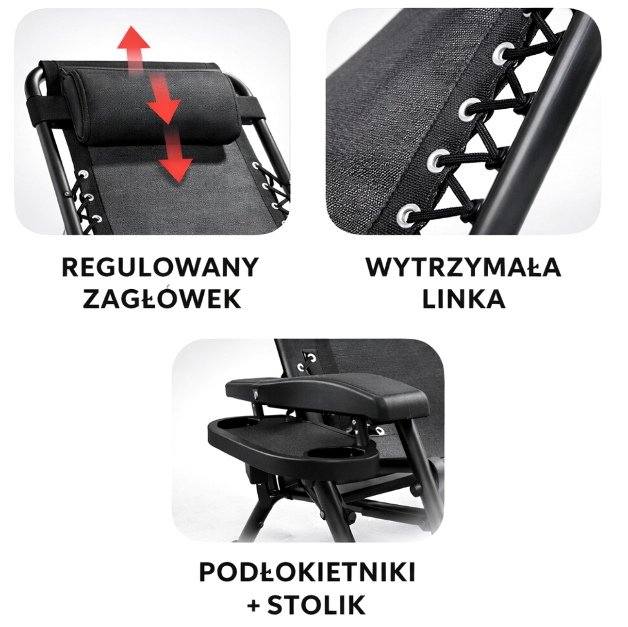 1. Czy to zwykły leżak?Nie. To fotel leżak grawitacyjny Zero Gravity, umożliwiający głębokie odchylenie i naturalną pozycję relaksacyjną.