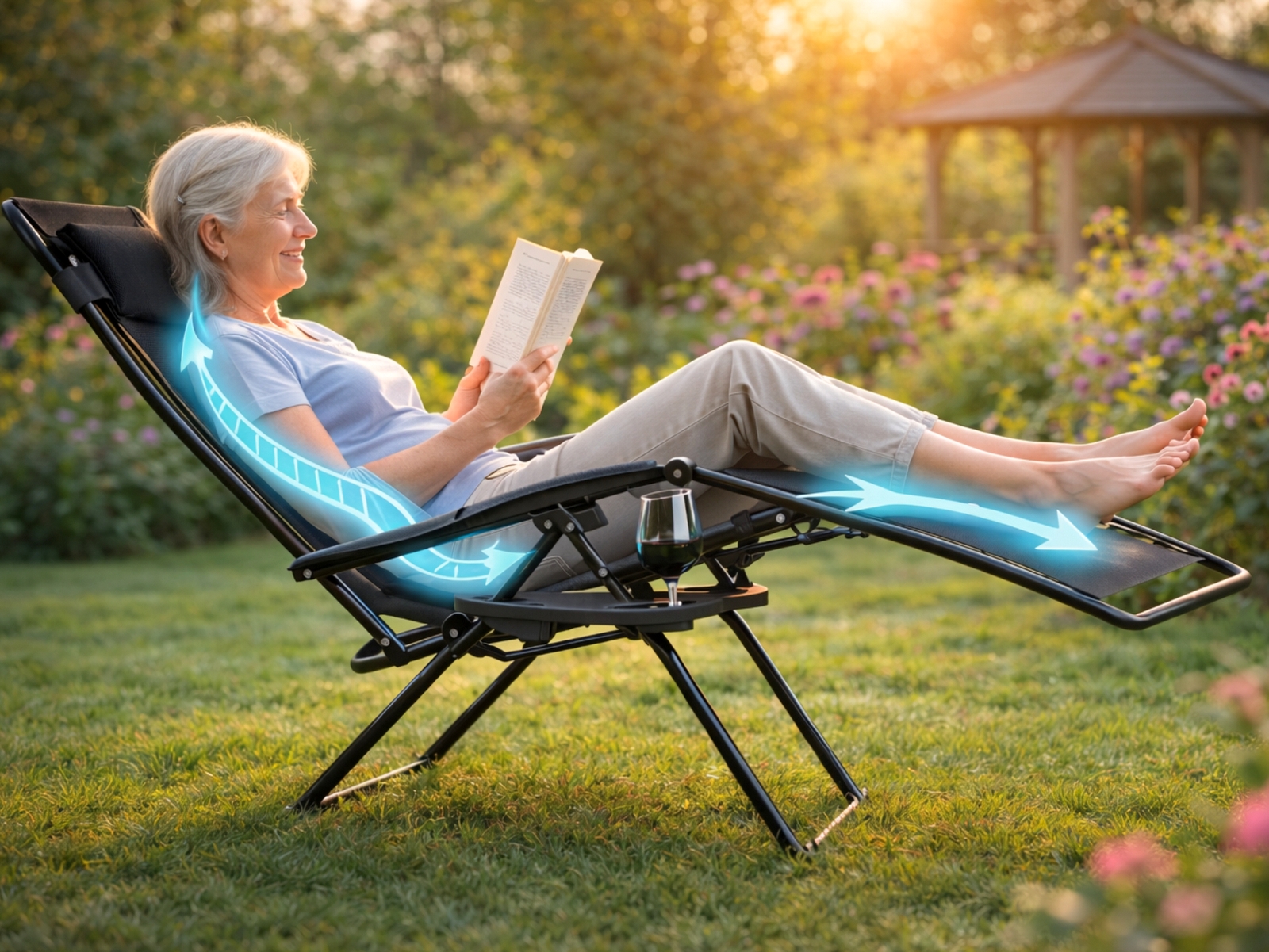 To nie jest zwykły leżak ogrodowy. To fotel leżak grawitacyjny Zero Gravity, zaprojektowany z myślą o maksymalnym komforcie i naturalnej pozycji wypoczynku.