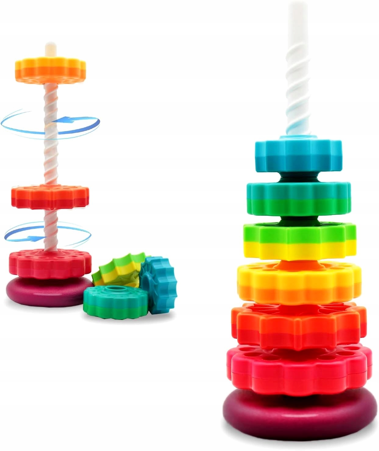 ZAKRĘCONA PIRAMIDA WIEŻA TĘCZOWA EDUKACYJNA MONTESSORI NAJWIĘKSZA XXL 41CM